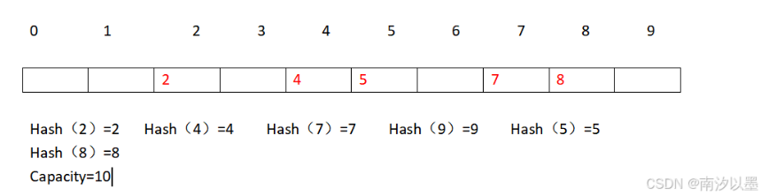 hash(key)=key%capacity;其中capacity是存储元素底层空间总大小