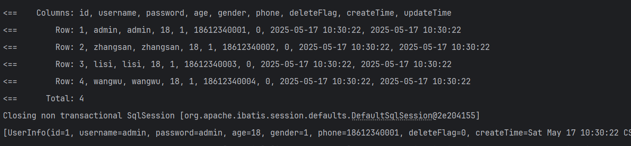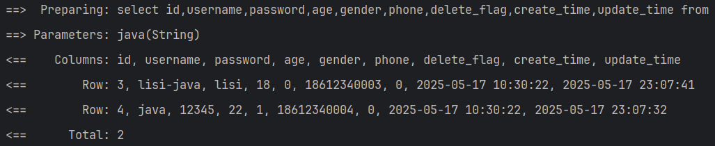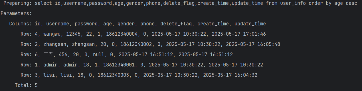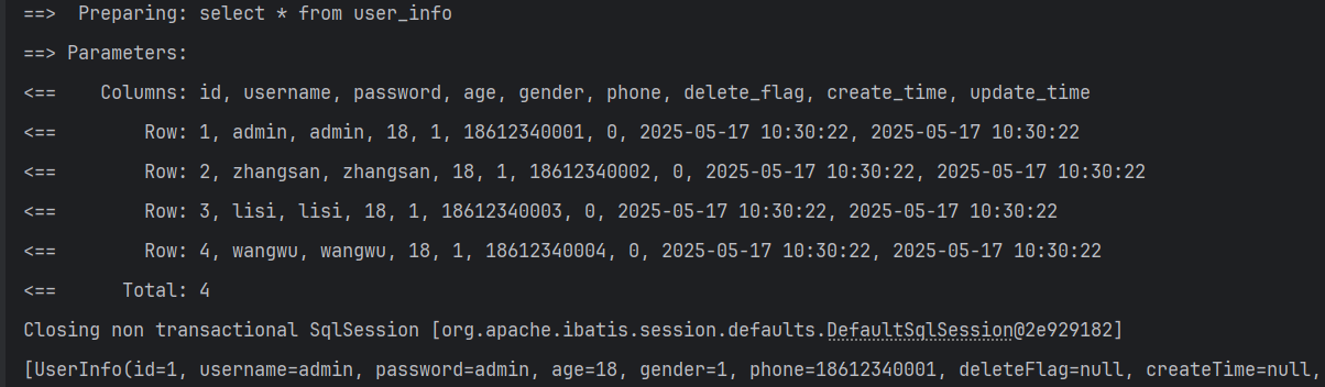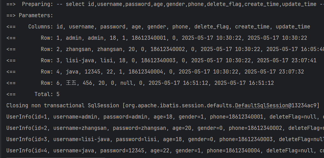 INSERT INTO mybatis_test.user_info(username, `password`, age, gender, phone)