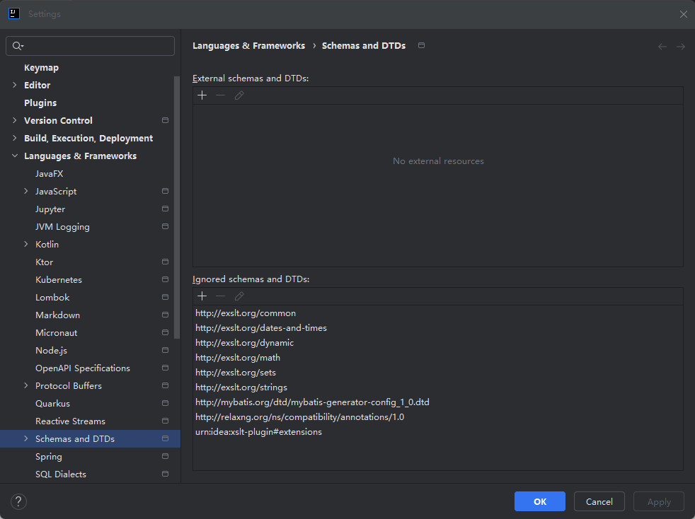 点击idea->file->setting->Languages & FrameWorks->Schemas and DTDS