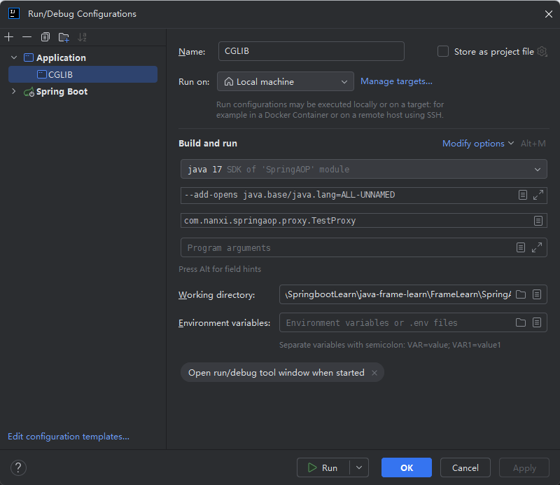 然后在出现的框上写入:--add-opens java.base/java.lang=ALL-UNNAMED