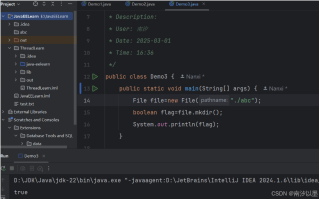 首先在当前项目下没有abc这个目录的,那么接下来的代码就是演示下如何创建这个目录的