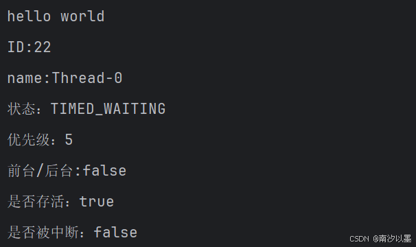 接着看到是否存活,很显然,线程run方法执行的内容是死循环,所以是存在这个线程,即存活