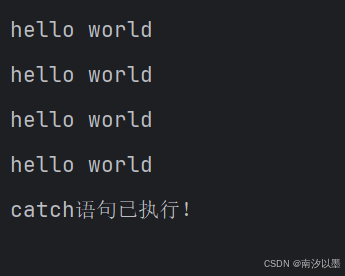 那么此时如若我们呢catch语句没有中断操作,除了它,它还是会继续打印hello world代码。