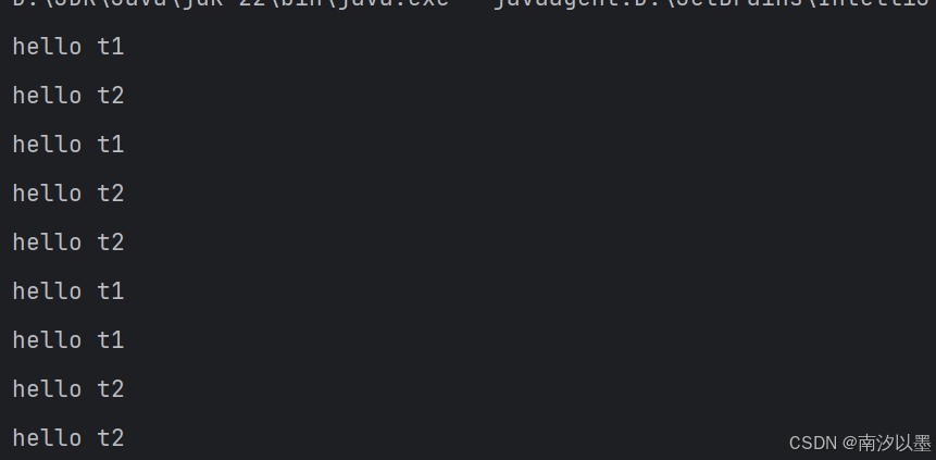 由于是线程是随机调度的,所以打印结果,有可能使交替出现,也有可能不是。