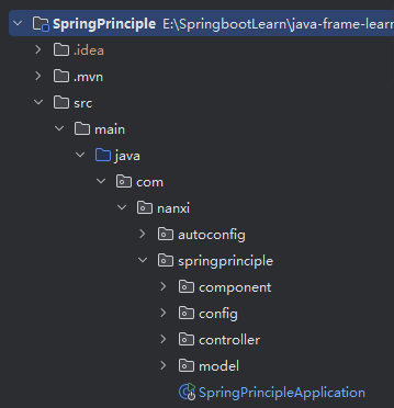 2.在Application启动类所在目录,创建config、controller、model、component目录