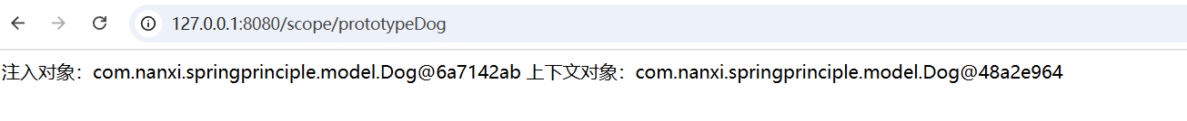 访问地址:http://127.0.0.1:8080/scope/prototypeDog